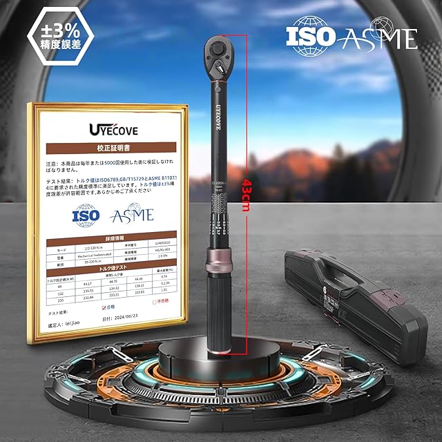 【ISO基準の測定精度、72歯と 5°送り角】この車トルクレンチ セットで高精度の車のタイヤトルクレンチの測定精度は±3%でISO基準:精度は±4%以内でDIN-ISO-6789(国際標準)を満たします, GB/T15729とASME B1107.14に要求された精度標準にも満足しています,72歯と 5°送り角のデザインで狭い場所でも使える車トルクレンチです。