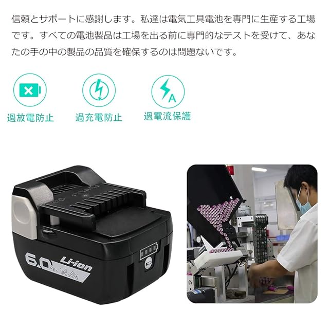 ★【高品質bsl1460bを搭載】 日立14.4Vバッテリー具全てにお使い頂けます。(互換バッテリーは全世界共通です) 安全の為に過電流、過充電、過放電防止の保護回路を搭載しておりますが、工場出荷時に入念なテストを繰り返す事で品質レベル安定させています。安いながら、そのパフォーマンスは純正品と遜色無し!自信を持ってお勧めします."