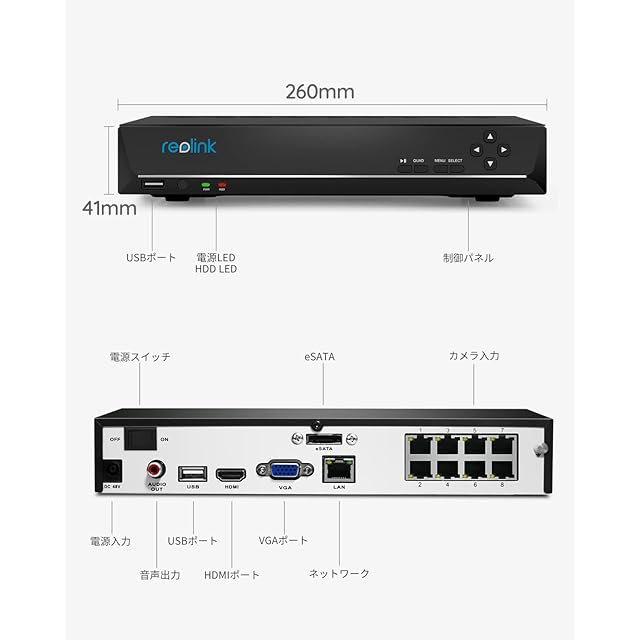 Reolink 4K 防犯録画機 8チャンネル PoE有線 NVR 2TB HDD付き H.265 防犯レコーダー スマホ遠隔監視 12TBまで増設可能 AI人/車/動物検知 12MP/8MP/5MP/4MP/1080P IPカメラ 24時間常時連続録画 ネットワークビデオレコーダー Reolinkカメラのみに対応 一括管理 日本語システム RLN8-410