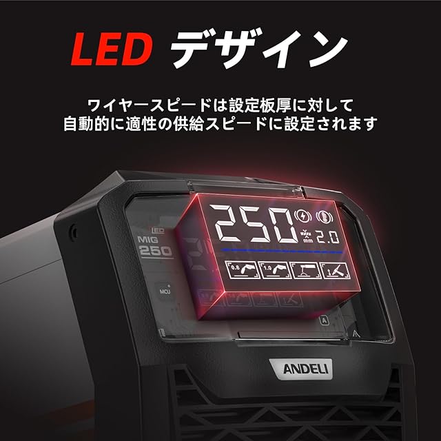ANDELI 半自動溶接機 120AノンガスMIG/アーク溶接/lift TIG 100V/200V兼用 インバーター直流溶接機 MIG溶接 半自動 LEDスクリーン 日本語取説書 MIG-250ME LED