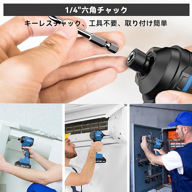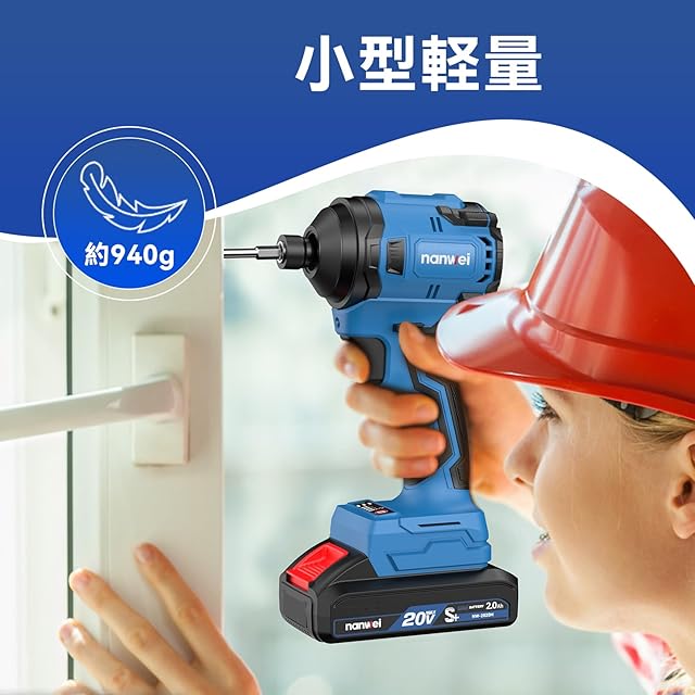 【小型軽量&コードレス】この電動インパクトドライバーは重量約910g、コンパクトなデザインで長時間の作業にも疲れにくく、持ち運びも簡単です。女性でも使いやすいです。コードレスの設計で、場所を選ばず、自由自在に作業できます。