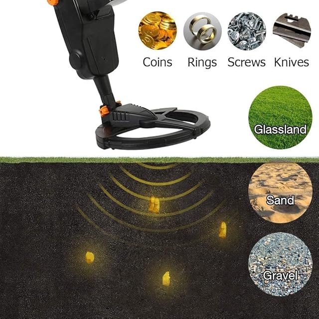 【調整可能な感度と音量】:感度の高いコントロールで検出器の感度を簡単に調整し、検索中にスピーカーの音量を調整して、紛失または紛失したコイン、宝石などの金属物体を見つけます。