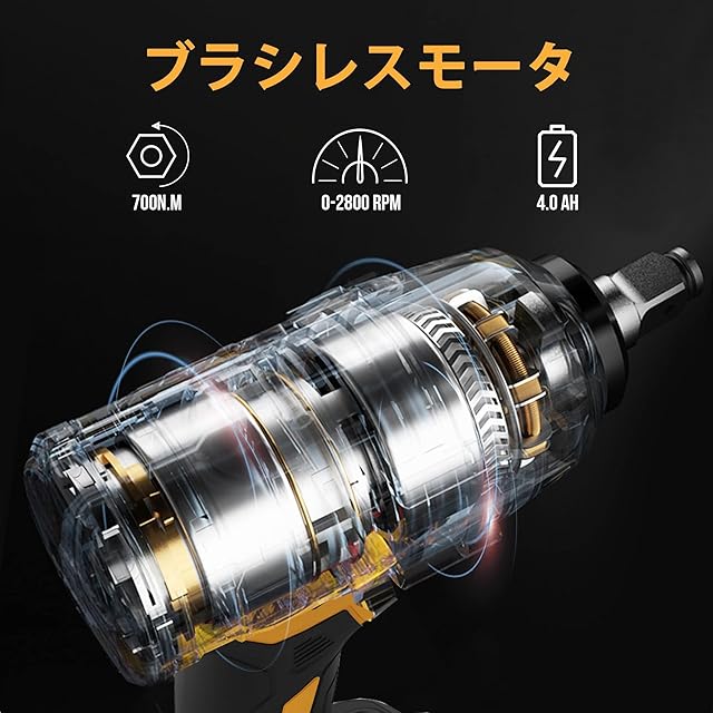 ✅高トルク電動インパクトレンチは4.0Ah高性能大容量リチウムイオンバッテリーと2.3Aの高速充電器を搭載し、長時間の使用や急速充電が可能です