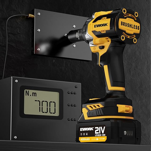 充電式インパクトレンチ-EWORK21Vブラシレスコンパクト最大700N.m高トルク電動インパクトレンチ4.0Ahリチウムイオンバッテリー、高速充電器、5ソケット、ツールバッグ