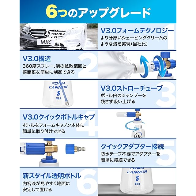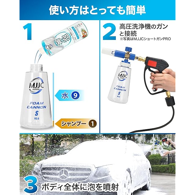 ✅泡性能を最大限に引き出すためにご確認ください ●「MJJC神泡」や、濃縮タイプのフォームガン専用シャンプーがおすすめです。●シャンプーの性能により泡立ち具合は変わります。(コーティング剤入り、鉄粉除去剤入り、大容量格安シャンプーは泡立ちが良くありません)