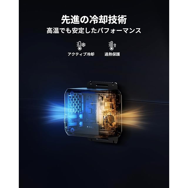 【高温下でも安定した性能】Charger 1はアクティブ冷却ファンを搭載していますので、高温下でもスムーズに動作できるほか、充電器の寿命を延ばし、必要な時にニーズに対応できます。