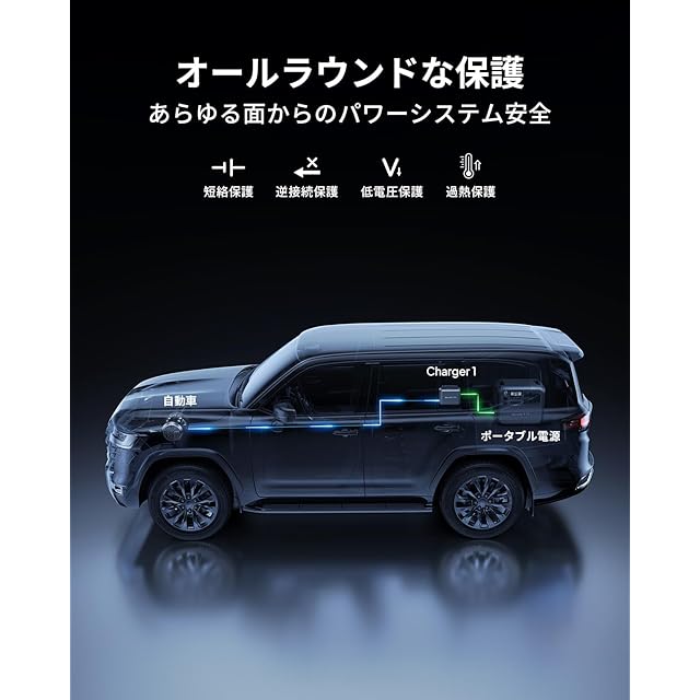 【バッテリーの消耗なし】道端で立ち往生することはありません。Charger 1は、インテリジェントな制御システムは、電圧を監視して充電を自動的に制御することができ、、カーバッテリーを安全に保つことができますので、安心して走行できます。