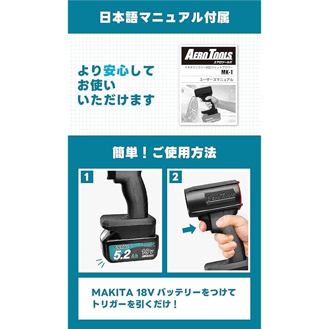 Aero Tools MK-1 洗車 ブロワー 最強 マキタ バッテリー 18V 保証付き ケース付き 日本企業 日本ブランド エアロツールズ mk1 エアロツール 充電式 強力 洗車ブロワー(単品)