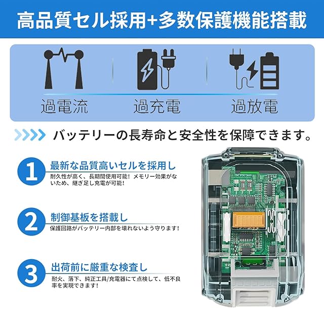 【高品質&低不良率】電気用品安全法に基づくPSEマーク取得済み!バッテリー内部に大型制御基板に過電流、過電流保護、過充電防止、過放電防止などの機能が付いております。多種多様な機種に対応するパウー メモリ効果がないため、継ぎ足し充電も可能になりました。自然放電が少なくて、長持ちできます。商品の耐久性や性能は純正品と遜色がないです。純正バッテリーと変わらない使用感、同様に使用できるのでオススメです。弊店は1年間保証付きを提供しております。もし、製品には何か問題あれば、お気兼ねなくお問い合わせください。