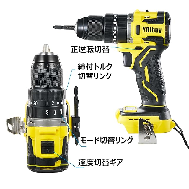 YOIbuy PRO 充電式 震動ドライバドリル 18V 互換 ドリルドライバー 高出力 ブラシレスモータ搭載 maxトルク70Nm 振り回る保護機能(APC機能)搭載 ターボモード付き Max回転数1950rpm 振動ドリル機能付き 20段クラッチ付き(バッテリ・充電器別売)YVD70-P11