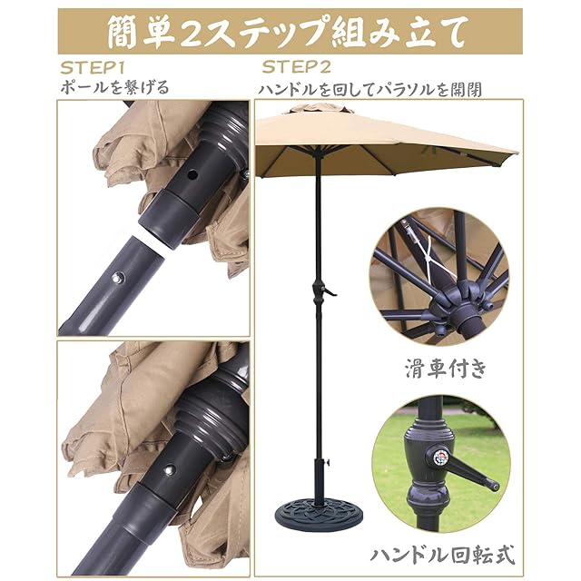 パラソル ガーデンパラソル 270cm uvカット 撥水 鉄製 ハンドル開閉 ビーチパラソル ガーデニング 庭 テラス アウトドア ビーチ キャンプ 日傘 折りたたみ 日よけ (ベージュ)