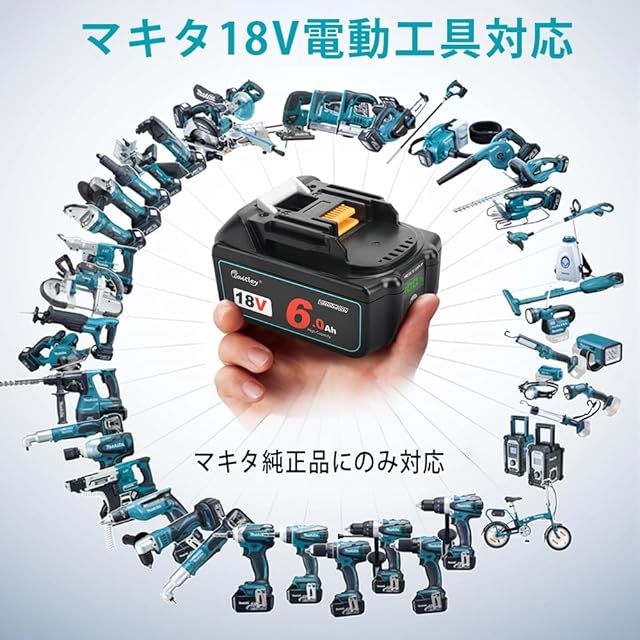 マキタ純正18vバッテリー互換品BL1830B BL1840B BL1850B BL1860B BL1890B。マキタ純正18v用充電器DC18RA、DC18RC、DC18RDなど充電をおススメます。用途:マキタ18v掃除機、マキタ 18v充電式マルチツール、マキタ18vインパクトドライバ、マキタ18v充電式ファン、マキタ18vブロアー、マキタ18vチェーンソーなど純正バッテリーを対応できる機種が適応です。