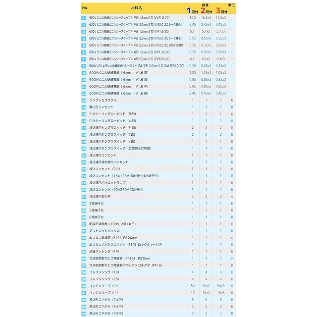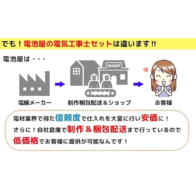 バリエーション多数ご用意。商品ページの下方に、バリエーションのセット内容と詳細のご案内があります。電線・器具セットに加え、必要に応じて、テキストや工具が付属するセットがございます。