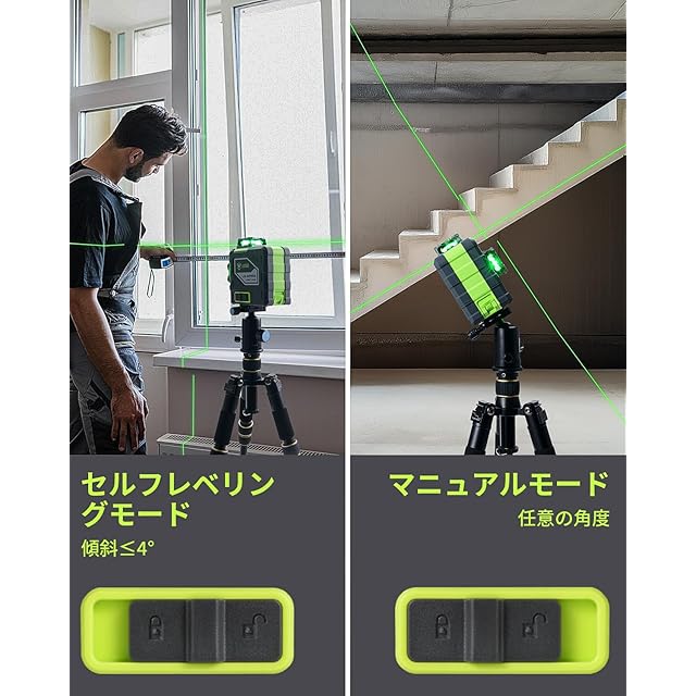 3x360 度全方位カバー:LasGoo LG-3DMAXは、1本の水平ラインと2本の垂直ラインを備え、水平方向と垂直方向の両方で包括的なカバーを提供します。これにより、あらゆる方向からの測定とマーキングが可能になり、迅速な視覚化とレイアウトの完了ができるため、作業効率が向上します