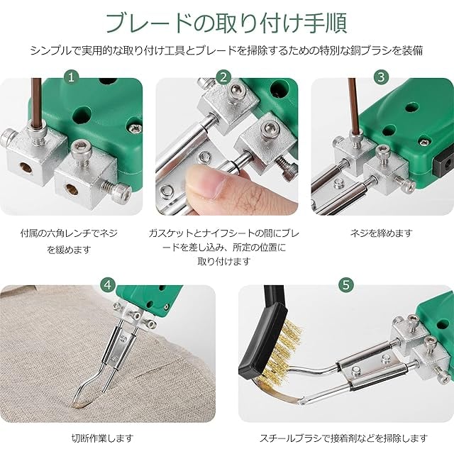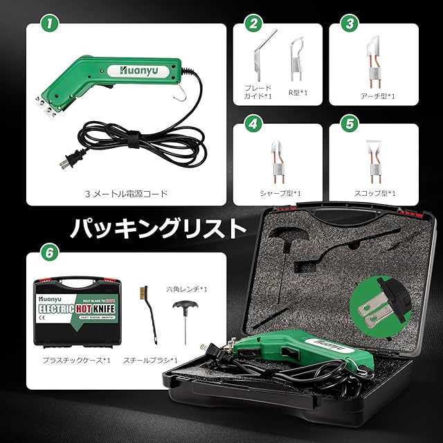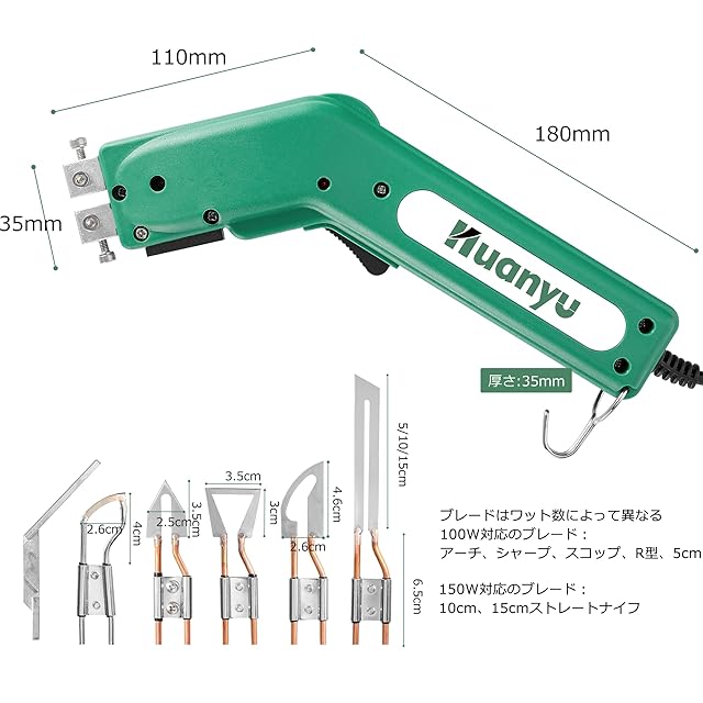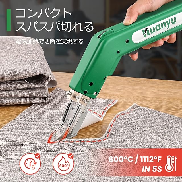 Huanyu ホットカッター ホットナイフ 600℃加熱調節 110V/100W ナイロン/布/ロープ/プラスチック/スチロール カット用 (4枚ナイフセット)