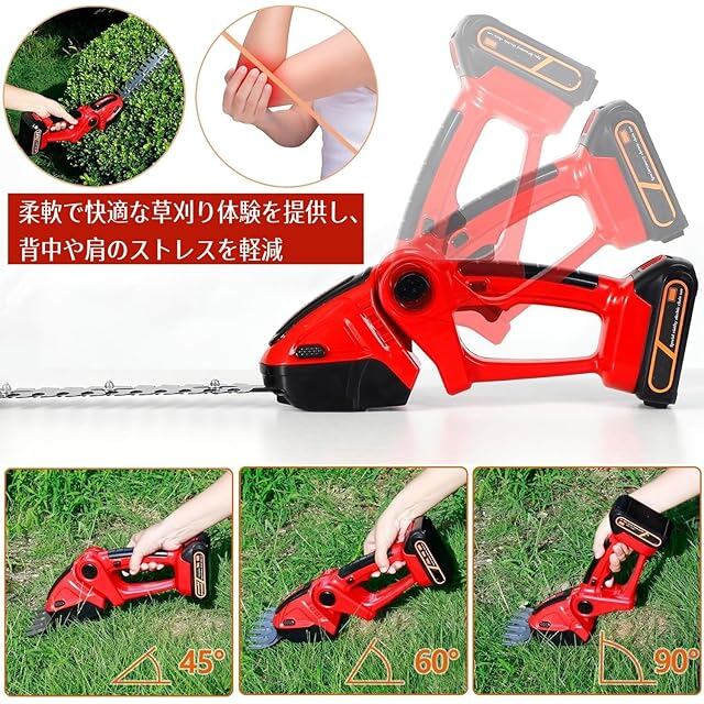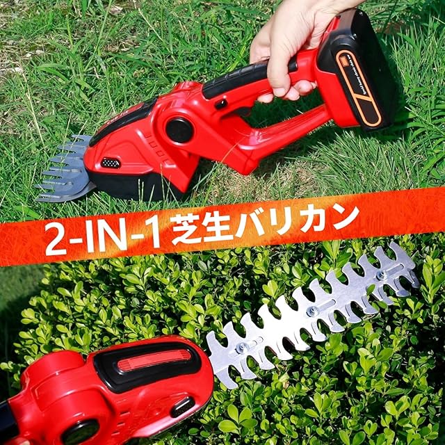 【ミニ軽量&広範な用途】とこでも手軽に使える軽量&コードレス芝生バリカンです。本体のみ約1KG、長時間の使用でも疲れにくく、女性や初心者でも簡単に庭木の剪定ができます。芝 バリカンは生け垣、芝生、低木などの剪定に使用でき、園芸作業の理想的な選択である。