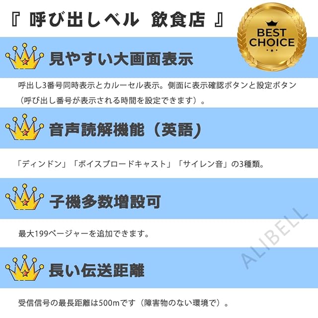 ALIBELL 呼び鈴 ワイヤレス 飲食店 呼び鈴 ワイヤレス飲食 店 業務 用 呼び出し ベル オーダーコール ワイヤレス チャイム 介護呼び出しベル コードレス チャイム 飲食店 居酒屋 焼肉屋 介護施設 病院