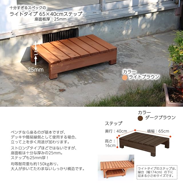 ガーデンガーデン デッキ風縁台 ライト用ステップ台(踏み台) 65cm×40cm ダークブラウン 防水用ゴム足付 SDES-65-DBR