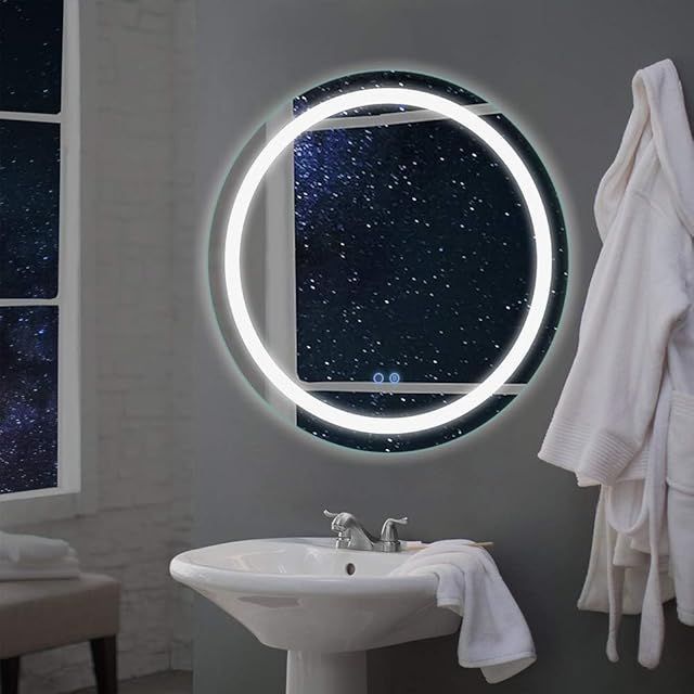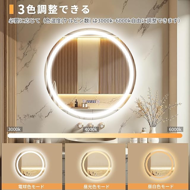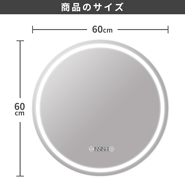 Bacoer ミラー 鏡 LED 壁掛け 照明付き 化粧鏡 洗面所 洗面台 おしゃれ 暖色 白色LED内蔵 色温度3000-6000K調節可能 (60CM*60CM)