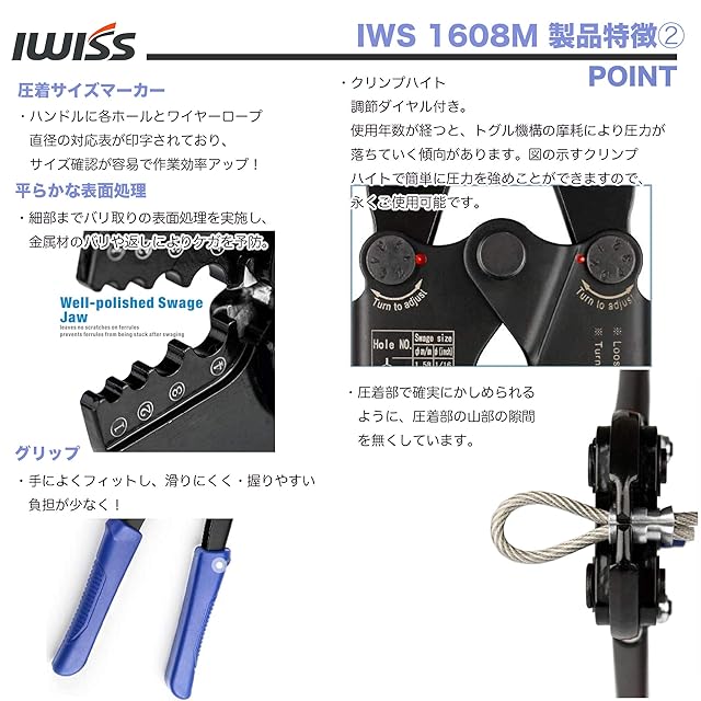 仕様:トグル機構/クリンプハイト調節ダイヤル/ワイヤーロープカッター