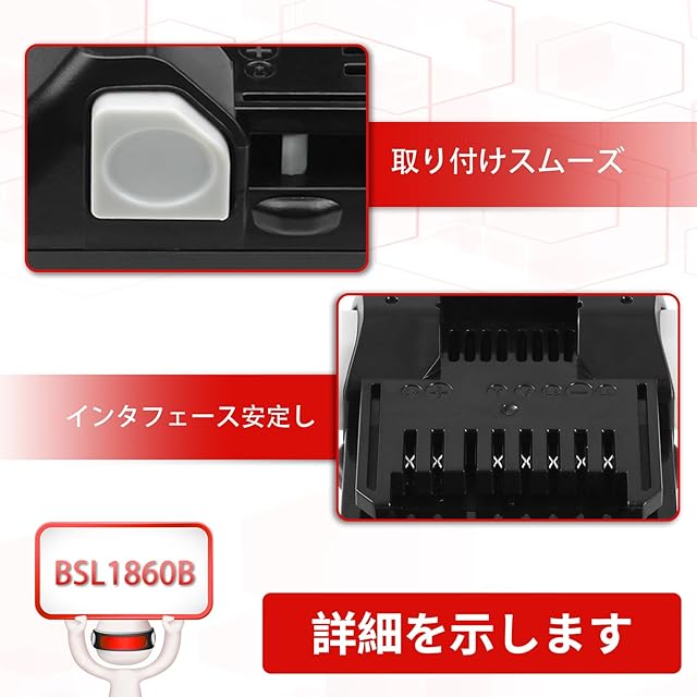 【BSL1860 互換 バッテリー】:BSL1815、BSL1830、BSL1840、BSL1850、BSL1860、BSL1830B、BSL1840B、BSL1850Bなどに対応可能です。UC18YFSL、UC18YDL、UC18YMLなどの純正/互換充電器に対応し、充電方法は純正品とは同じです。