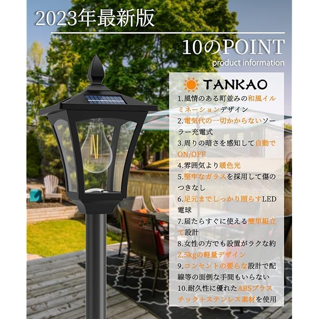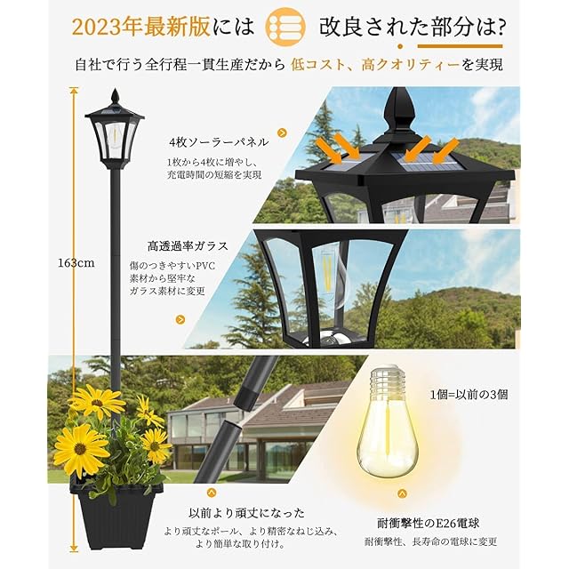 【2023昇級版】 ガーデンライト ソーラー 屋外 暖色 和風 庭園灯 ソーラー街灯 ポール 庭用ライト 防水 装飾雰囲気 おしゃれ レトロ感 装飾 12時間照明 埋め込み式 光センサー付き 自動点灯消灯 防犯対策 外灯 太陽光パネル充電 配線不要 簡単取付 庭園照明 アンティーク風 庭園灯 お庭/歩道/玄関先/芝生/小道に最適 (植木鉢なし)