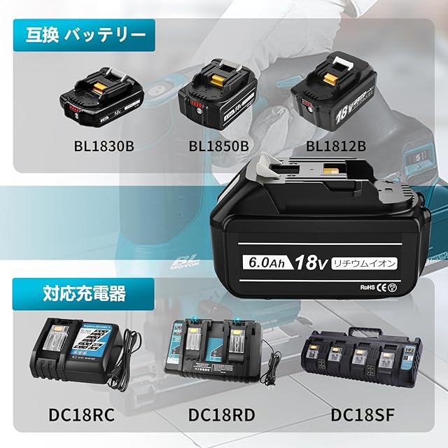 【長時間作業】純正バッテリーと変わらない使用感、同様に使用できます。18v対応 充電器 DC18RC DC18RD DC18SF など対応できます。