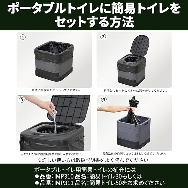 セイワ(SEIWA) 防災グッズ 簡易トイレ 折り畳み式 ポータブルトイレ + 簡易トイレ(排泄物用袋10枚、凝固剤10個) 15年間保存可能 IMP309 非常時にいつでも使える 防災 アウトドア 介護トイレ【便座の高さ42㎝、開口部の奥行き30㎝】 簡易トイレ10回分(排泄袋10枚、凝固剤10個)同梱【凝固剤+消臭効果】