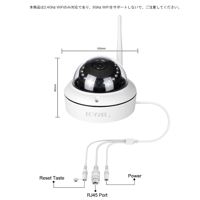 ICAMI 防犯カメラ HD 1080P ワイヤレス IP 監視カメラ SDカードスロット内臓で自動録画 WIFI対応 動体検知 アラーム機能 音声機能 暗視撮影 回転しません