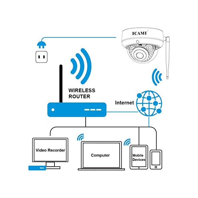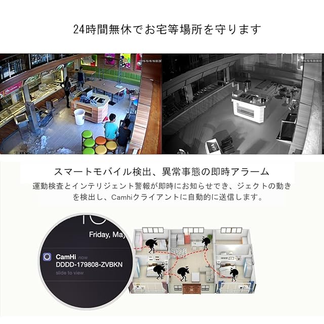 パソコン、iPhone、iPad、AndroidでCamhi Appをダウンロードして、インターネット経由で、外出先からもスマホ.タブレットPC等で簡単に映像を観ることができます。配線しないで専用アプリで操作はとても簡単です。