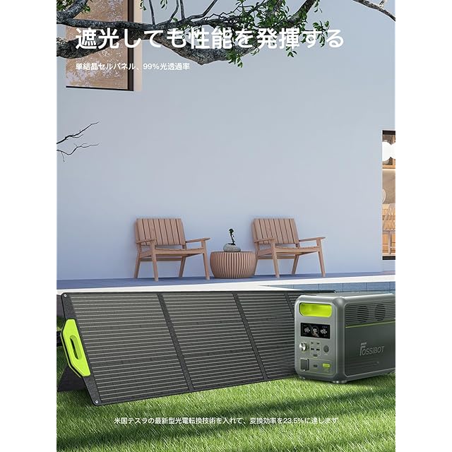 【最先端光電転換技術 ・高い効率23.5%実現】FOSSiBOT ソーラーパネル200は最先端高品質の単結晶シリコンパネルを採用しており、99%光透過率の新型ETFEフイルムを覆い、アメリカテスラの最新型光電転換技術を入れて、エネルギー変換効率を向上させて23.5%に達します。また、低照度発電性能に優れた、曇りの日でも太陽光を効果的に吸収して発電・充電が可能です。またFCC, RoHS, CEなど認証を取得し、スマートICチップ搭載し、自動的に接続したデバイスを識別し、適当な電流でデバイスを快速充電でき、過充電、過負荷、過電流、短絡保護機能も付き、ソーラーパネル自体も電源もしっかりと守ってくれて安心してお使いいただけます。