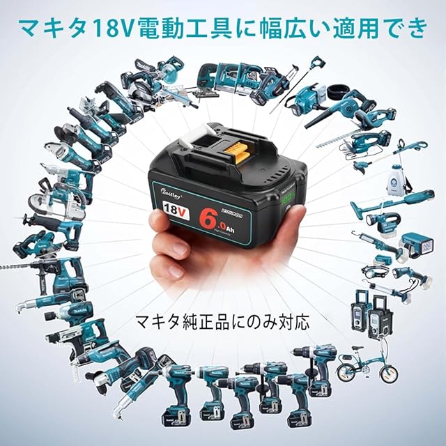 þ〖本製品対応〗マキタ純正18vバッテリー互換品BL1830B BL1840B BL1850B BL1860B BL1890B。マキタ純正18v用充電器DC18RA、DC18RC、DC18RDなど充電をおススメます。工具種類:マキタ充電式生垣バリカン、マキタ18v掃除機、マキタ18vUSBアダプタ、マキタ18vインパクトドライバ、マキタ18v充電式ファン、マキタ18vブロアー、マキタ18vチェーンソーなど純正バッテリーを対応できる機種が適応です。