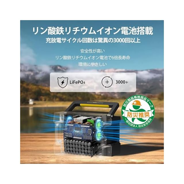 【長寿命・超安全なバッテリー搭載】Evopowポータブル電源は安全性高いリン酸鉄リチウムイオンを採用し、通常のポータブル電源(500回以上)の電池寿命の6倍、(約3000回の充放電サイクル)一般的なポータブル電源より使用寿命が長くて、環境にもやさしいです。熱分解温度が高く、熱安定性が非常に優れています。バッテリー内部に安全保護システム(BMS)があり、バッテリーの充電/放電を管理します。アウトドアはもちろんのこと、防災用に長期保管する場合でも電池の残量を心配することがありません。Evopow ポータブル電源を選択、最高精度の安全性を実現します。