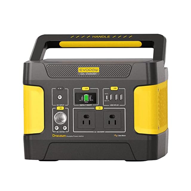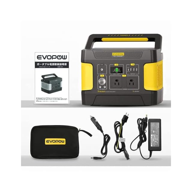 Evopow ポータブル電源 リン酸鉄 大容量 515Wh/160938mAh 出力600W (瞬間最大1200W) AC/DC/USB/Type-C 四つの充電方法 AC出力(2ポート) 100V LEDライト付き MPPT制御方式 純正弦波 家庭用 アウトドア用 ソーラー充電 地震/台風/防災/停電/緊急/非常用 ポータブルバッテリー PSE認証済