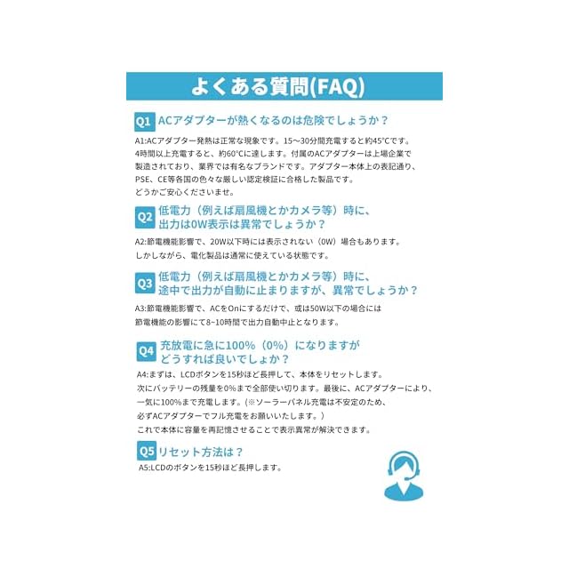 【最大9台のデバイスに同時給電】AC出力ポート*2、USB-A出力ポート*3、USB-C出力ポート*1、シガーライターソケット出力*1、DC-12V出力ポート*2を搭載。 さまざまな家電製品に対応しており、最大9台の機器を同時に給電できます。ランタンやSOS用フラッシュとして使用可能なLEDライトを搭載しており停電時も安心。万が一の場合も十分な電力と灯りによる安全を提供します。60Hzまたは50/60Hzの両方対応の製品に使用することができます。50Hzにしか対応していない製品は動作しませんのでご注意ください。