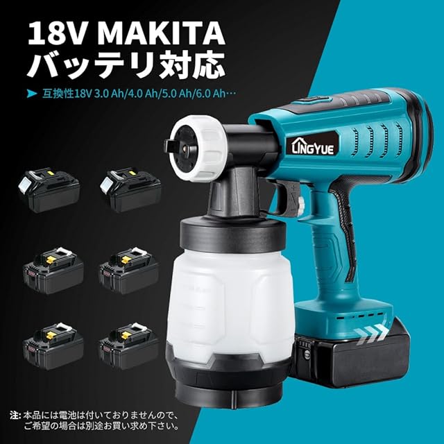 lingyue コードレススプレーガン本体のみ マキタ 18V バッテリー専用 BL1830 BL1840 BL1850B BL1860B バッテリー対応 本体のみ