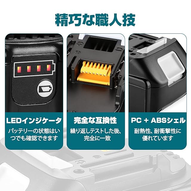 ✨【完全互換】マキタバッテリーBL1430、BL1440、BL1450、BL1460、BL1815、BL1830、BL1840、BL1850、 BL1860、BL1430B、BL1460B、BL1830B、 BL1850B、BL1860B、BH9020B、BH1220、BH1420、BL1415、BH9020、BH1427LXT400 194205-3 194230-4など。マキタ充電器DC18RC DC18RD DC18RAと互換できます。
