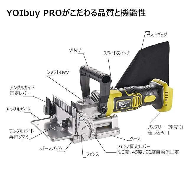 YOIbuy PRO 充電式 ジョイントカッター 18V互換 高精度 深さ簡単調整 ビスケット ジョイントが楽に (バッテリ・充電器・ケース別売) YJC-01