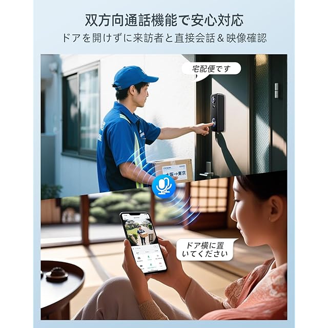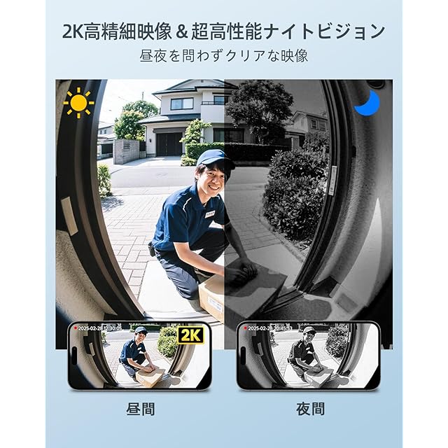 【2K超高精細・プロ級ナイトビジョン】ドアベルカメラは2560×1440ピクセルの2K超高精細画質とF2.0大口径レンズを採用し、業界標準比150%高い解像度で配達員の表情から荷物のラベルまでくっきり認識可能。高感度イメージセンサーで、逆光時でも訪問者の顔を明るく鮮明に撮影。さらにプロ仕様赤外線ナイトビジョン搭載で、完全な暗闇でも最大10m先まで視認可能。不審者が訪れた場合も、髪型や服装の特徴をはっきり確認できるので、防犯対策に最適です。