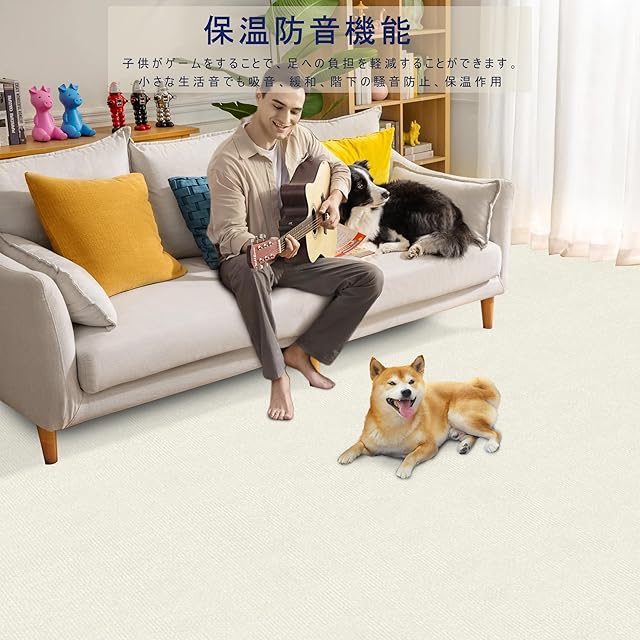 【Amazon 限定ブランド】タイルカーペット HDMOD ジョイント マット【45x45cm 厚さ4mm】 40枚 吸着マット タイルマットズレない めくれない カーペット 防音マット フローリングカーペット 滑りとめ 防臭防菌 防音保温 洗濯機洗える ペット用カーペット お手入れ簡単 設置簡単(オフホワイト)