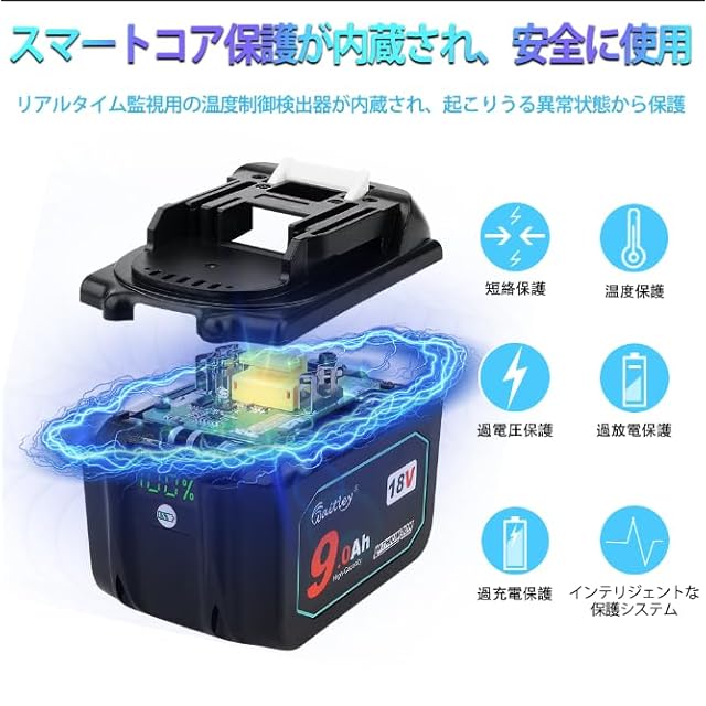 【高容量マキタバッテリー】マキタ純正バッテリー18V対応の機種対応できます。充電時間、連続使用時間も純正品と同レベルの商品です。超大容量:9000mAh 連続使用時間は従来のBL1830より4倍アップ。充電方法は純正品と同じです。バッテリーの寿命を保護するために、マキタ純正充電器のご利用をお勧めします。