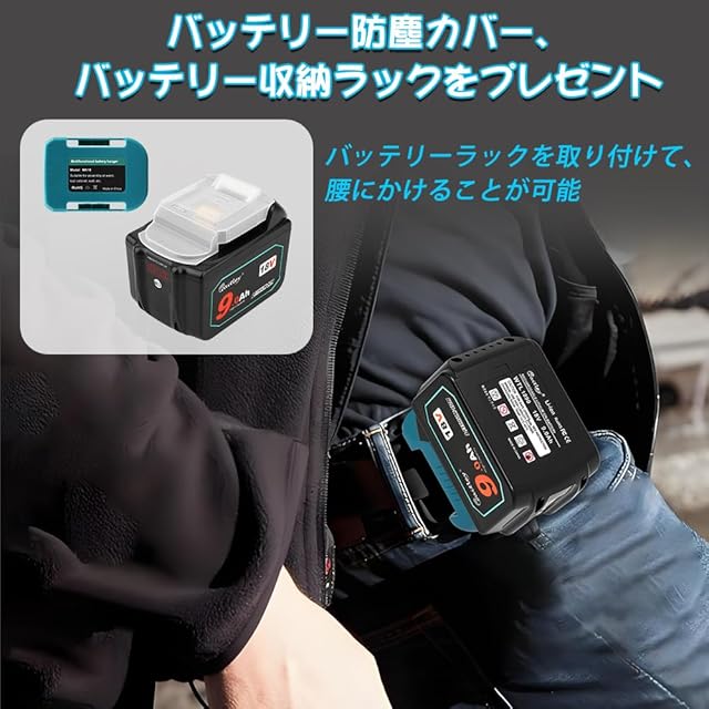 【商品仕様】商品名:マキタ互換18VバッテリーWTL1890 電圧:18V 容量:9000mAh 個数:1個 認証:PSE、CEマーク取得済み 電池種類:リチウムバッテリ着脱方式:スライド式 日本語の説明書付き