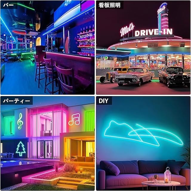 [安全で耐久性]] 24V低圧のパワーから、このネオンライトLEDライトバーは安全に使用できます。 シリコンシェルは柔らかくて丈夫で、高温耐性であり、赤外線リモートコントロールとアプリによって制御できます。