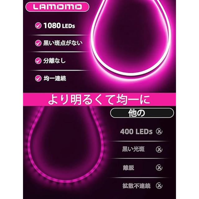 [2160 LEDで構成される[スーパーブライトもさまざまな色]。LEDネオンライトベルトはアップグレードされたLEDです。サイドブライトネスデザインにより、LEDバンドは通常のLEDバーよりも明るくなります。 120度の投影範囲は、大きな照明カバレッジ、均一な高輝度、柔らかい光効果を提供できます。
