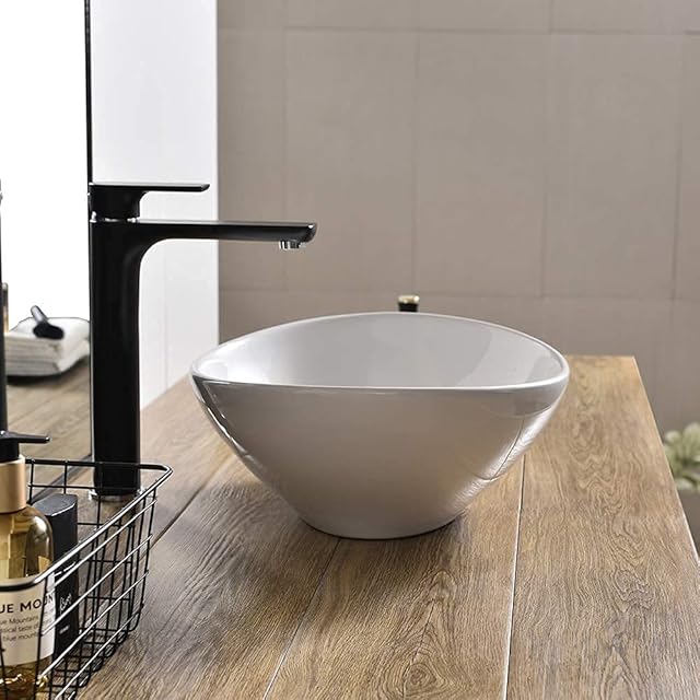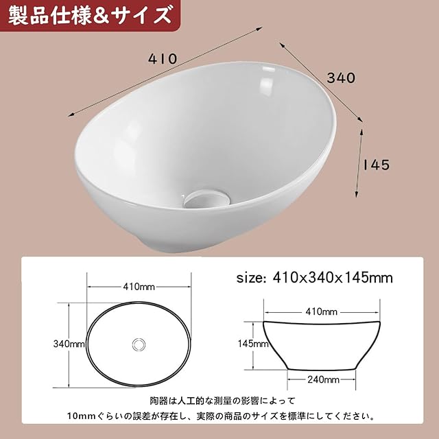 【JOMOWN限定排水セット付き】おしゃれ 洗面ボウル 洗面ボール 置き型 洗面台 手洗い鉢 高温焼成 陶器製 手洗い器 手洗いボウル 洗面鉢 410*340*145mm(楕円形)