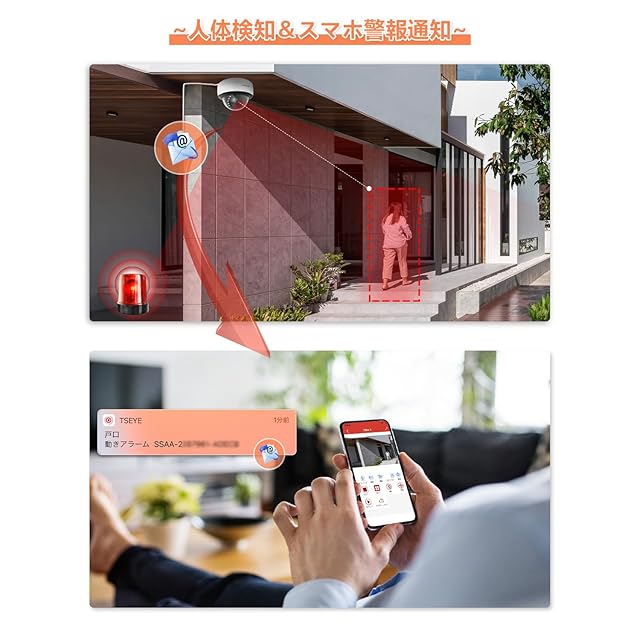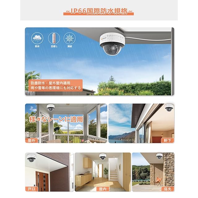 ♪【AI人体検知機能★IP66防水防塵⭐⭐⭐⭐⭐】poe防犯カメラセットがAI人体検知機能付きて撮影範囲内で不審な動きがあった際には、インテリジェント警報が即時アプリとメール(写真付き)を送信します。外出でもスマートフォンからライブの画面を監視して、盗賊を防止可能です。人の行き来が多い場所、逆に死角になっている場所、夜間に薄暗くなりがちな場所や貴重品が置いてある場所など、防犯カメラの設置に適します。また、屋外カメラ本体はアルミ合金の材質のため、耐候性もかなりあり、よく雨が降るところや梅雨の季節でも、屋外の状況を24時間監視し続け、映像を流し続けるのです。