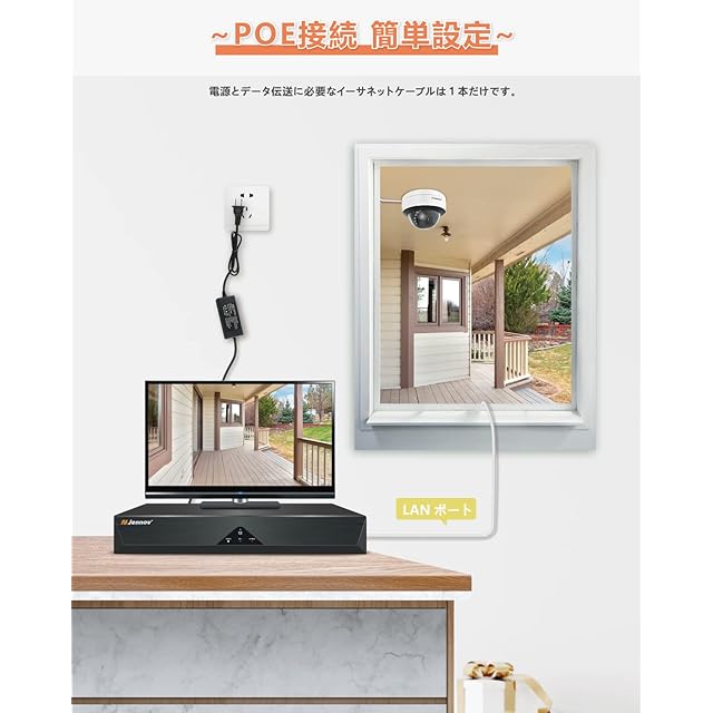 ♪【最新4K超高画素の親機★ドーム型防犯カメラ⭐⭐⭐⭐⭐】JENNOV録画機は800万超高画素に対応する為、800万/500/300/200万画素POEカメラと互換性があり、カメラの性能をフルに発揮します。また、POE防犯カメラは500万画素のチープを採用しており、2560X 1920の高い解像度で撮影、鮮明かつきれい、高精細度な映像が映ります。さらに、ドーム型のミニーカメラ(角度の自動回転不可)と組み合わせ、空間が取らず、見た目アップの監視カメラが登場!天井に取り付けられ、屋外も対応可能。お家のデザインに合わせる可愛い型の防犯カメラです。