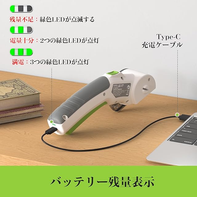 【充電式】2000mAh大容量バッテリーを内蔵、満電で45分以上の連続作業ができます。バッテリー残量表示ランプ付きなので、一目で残量がすぐ分かります。また、Type-C USBケーブルが付いて、普通の市販されているアタプター(DC5V 0.5~1.0A)に接続して、充電ができるので便利です。