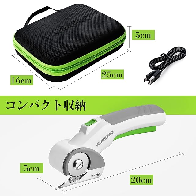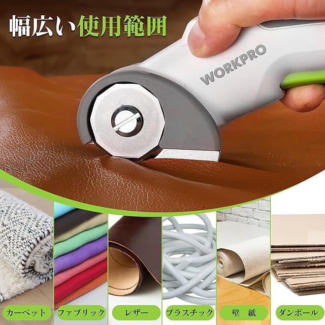 WORKPRO 電動カッター コードレスマルチカッター 電動ダンボールカッター 布カッター 3.6V充電式 M2ステンレス鋼ブレード 布 レザー カーペット 段ボール プラスチックなどの切断に Type-Cケーブル付き