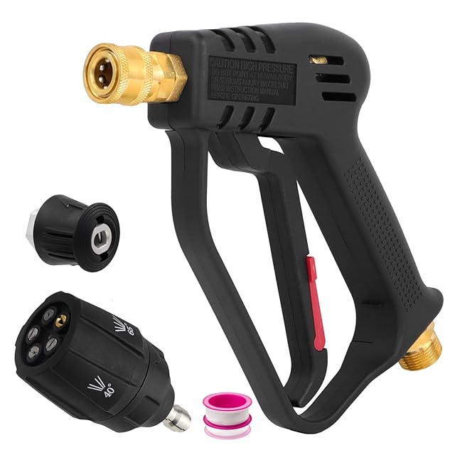 ✨【高品質素材&安全トリガーロック】ankonショートガン本体は、耐久性、耐摩耗性、耐落下性に優れたエンジニアリングプラスチック製です。 内部は高品質の真ちゅう製で、漏れがなく、4000PSIの圧力まで使用できます。また、高圧洗浄機のショートガンには安全トリガーロックが付いており、偶発的なトリガーのトリガーを防ぎ、事故や怪我を防ぎます。